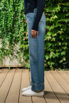 Jeans 5 tasche a vita media. Gamba ampia. Orlo risvoltato. Realizzati in denim di cotone.