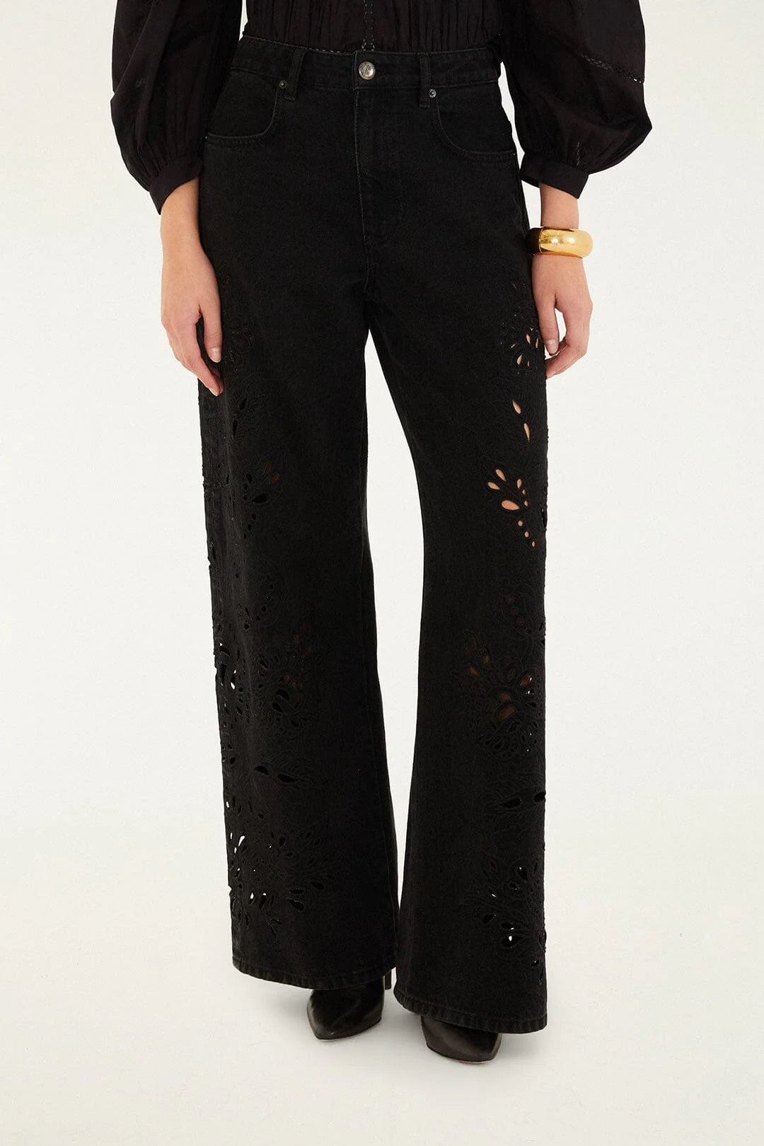 Farm Rio - Black Cut-Out Richelieu Denim Pants