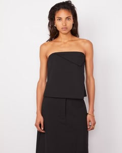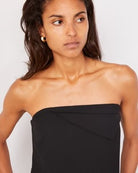 Bustier aderente asimmetrico, con pannello frontale invertito.