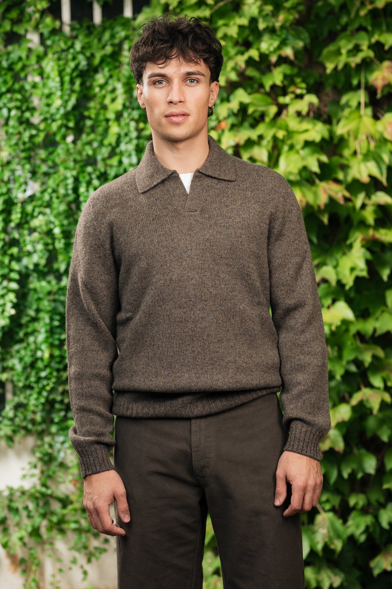 Hosio - polo in lana marrone