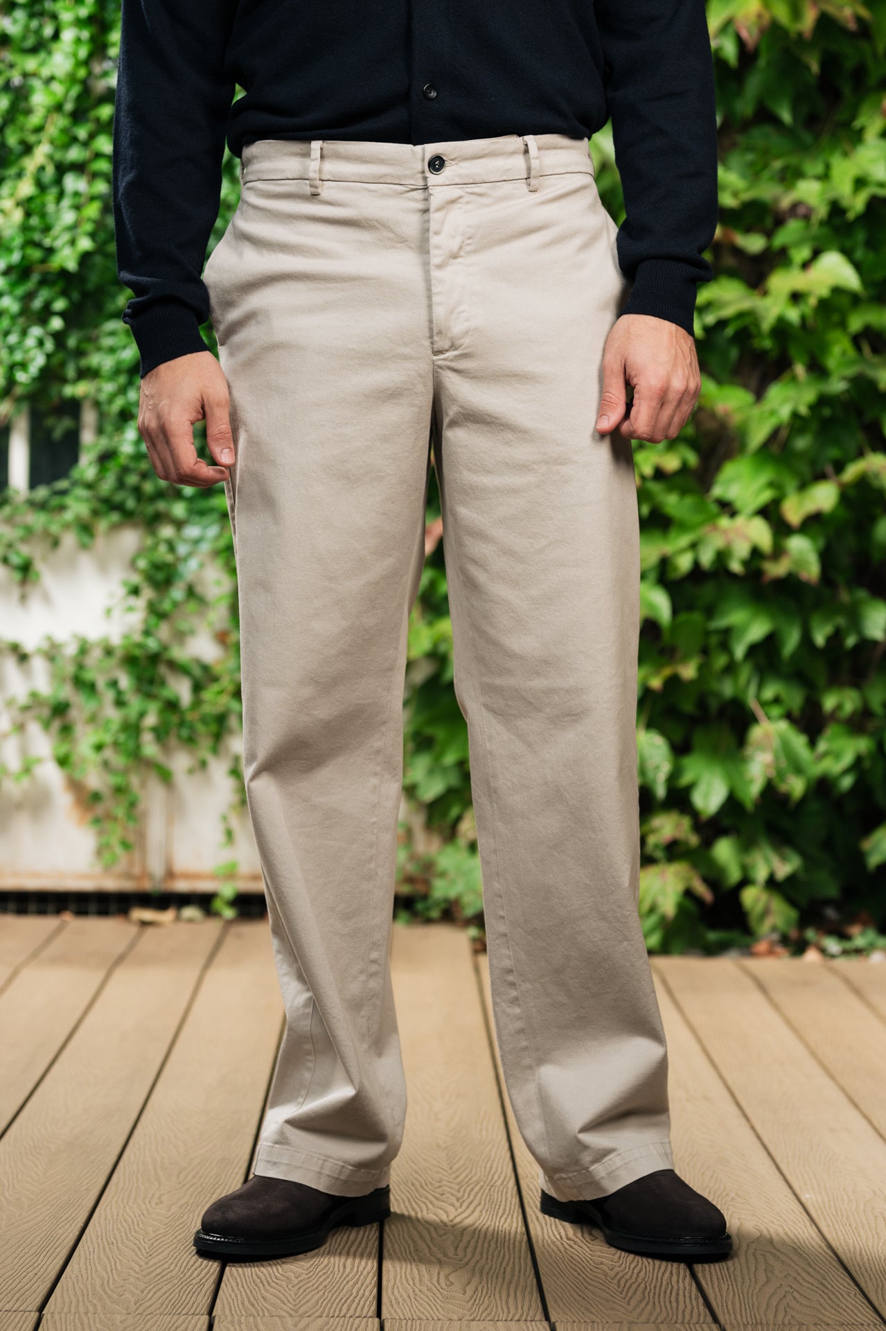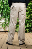 pantalone realizzato in twill di cotone elasticizzato dalla vestibilità morbida.