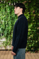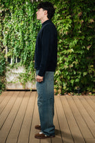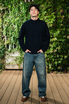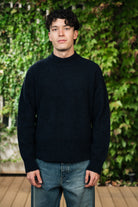 Girocollo in misto lama e cashmere color blu navy con bastonetto a coste.