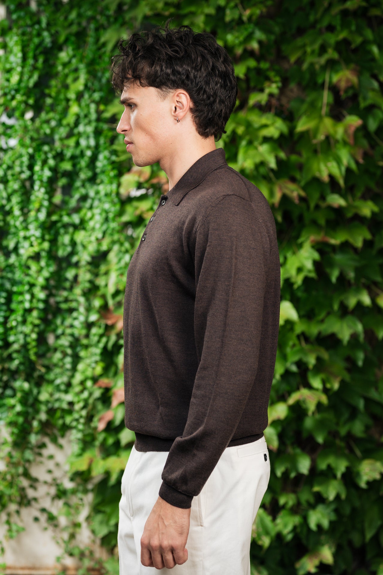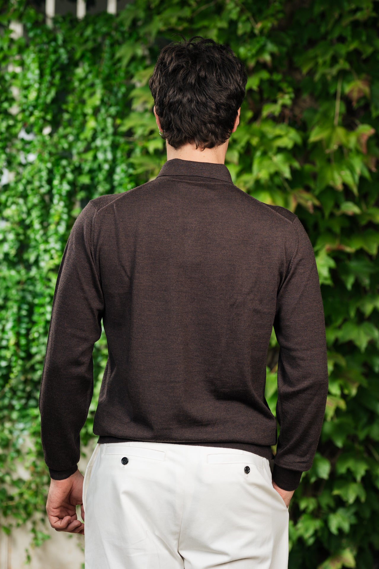 polo in 100% lana merinos color marrone